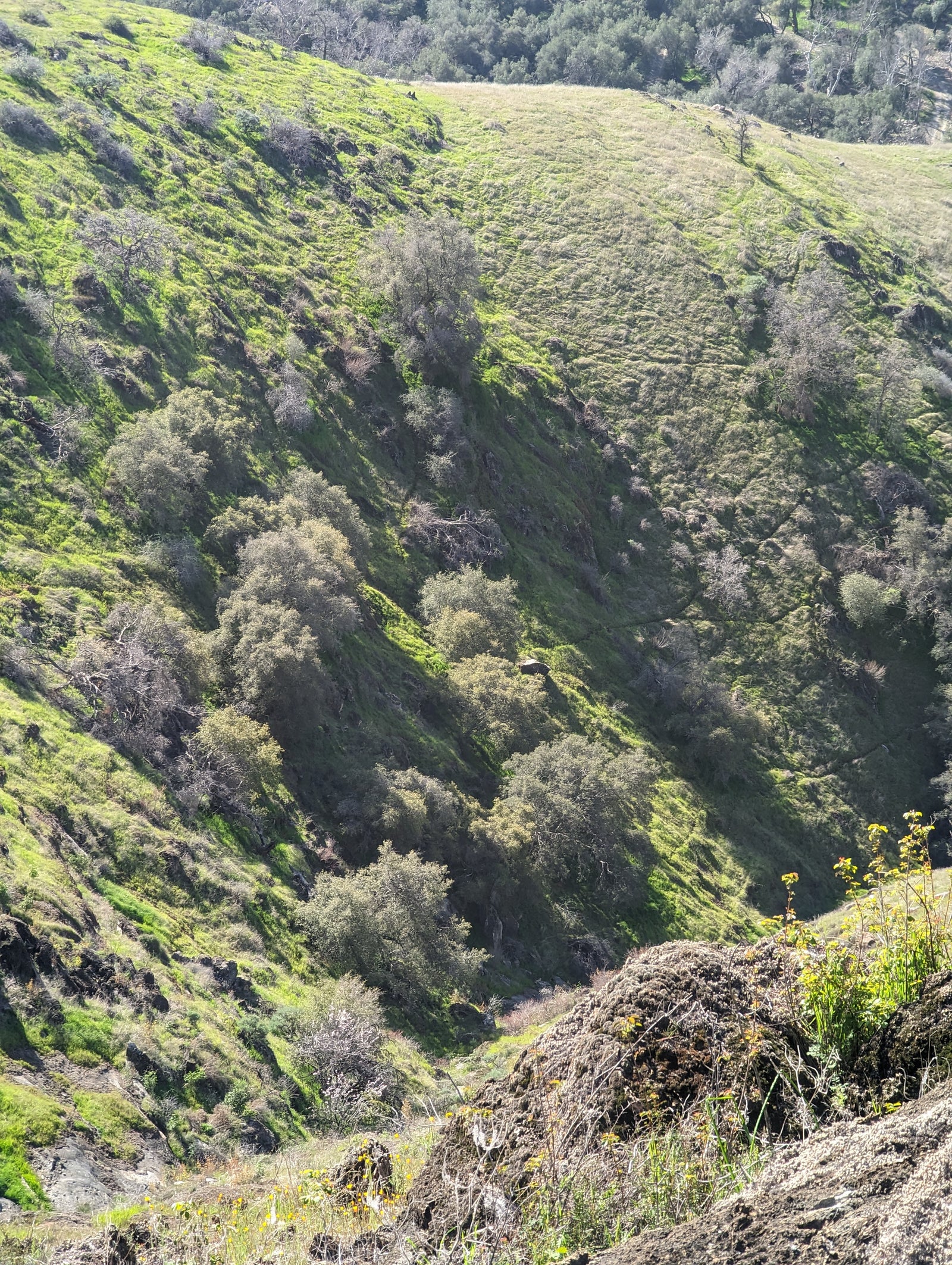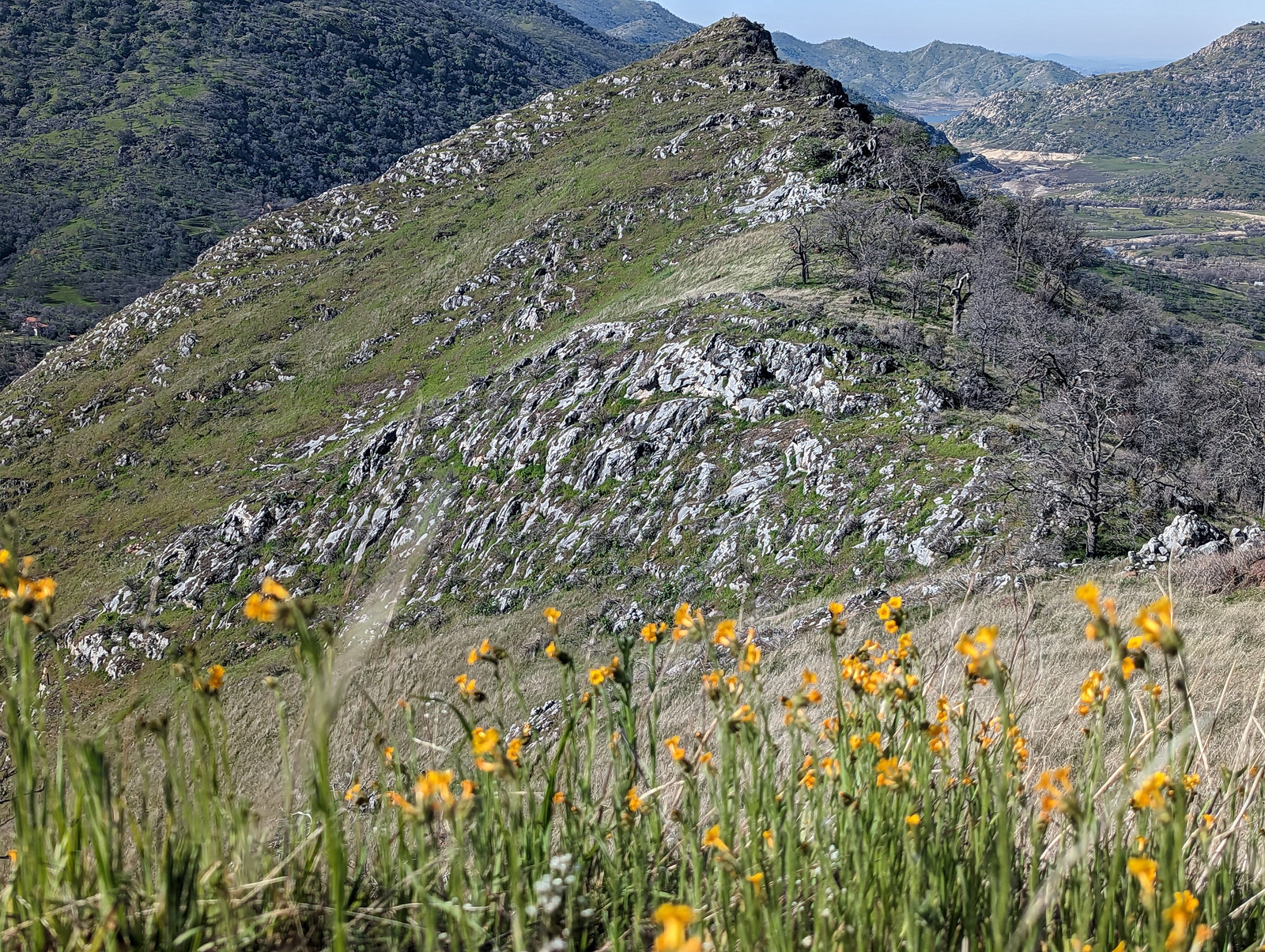 Today, I climbed up the hill again. The ridgeline at the top is a nice flat area. I went to the corner of the proprety towards Blossom Peak this time. This area is even higher than Little Blossom. And of course fabulous views abound. Then I walked the ridgeline back to Little Blossom. I've been seeing in the news how they are predicting a super bloom this year due to all of the rain that we have had. You can see the flowers starting to show.