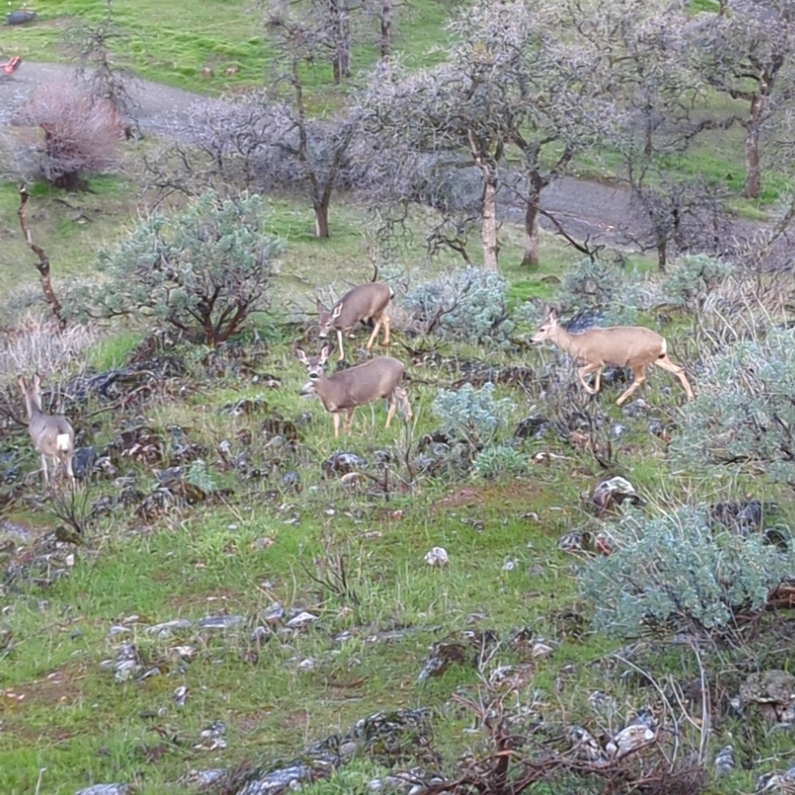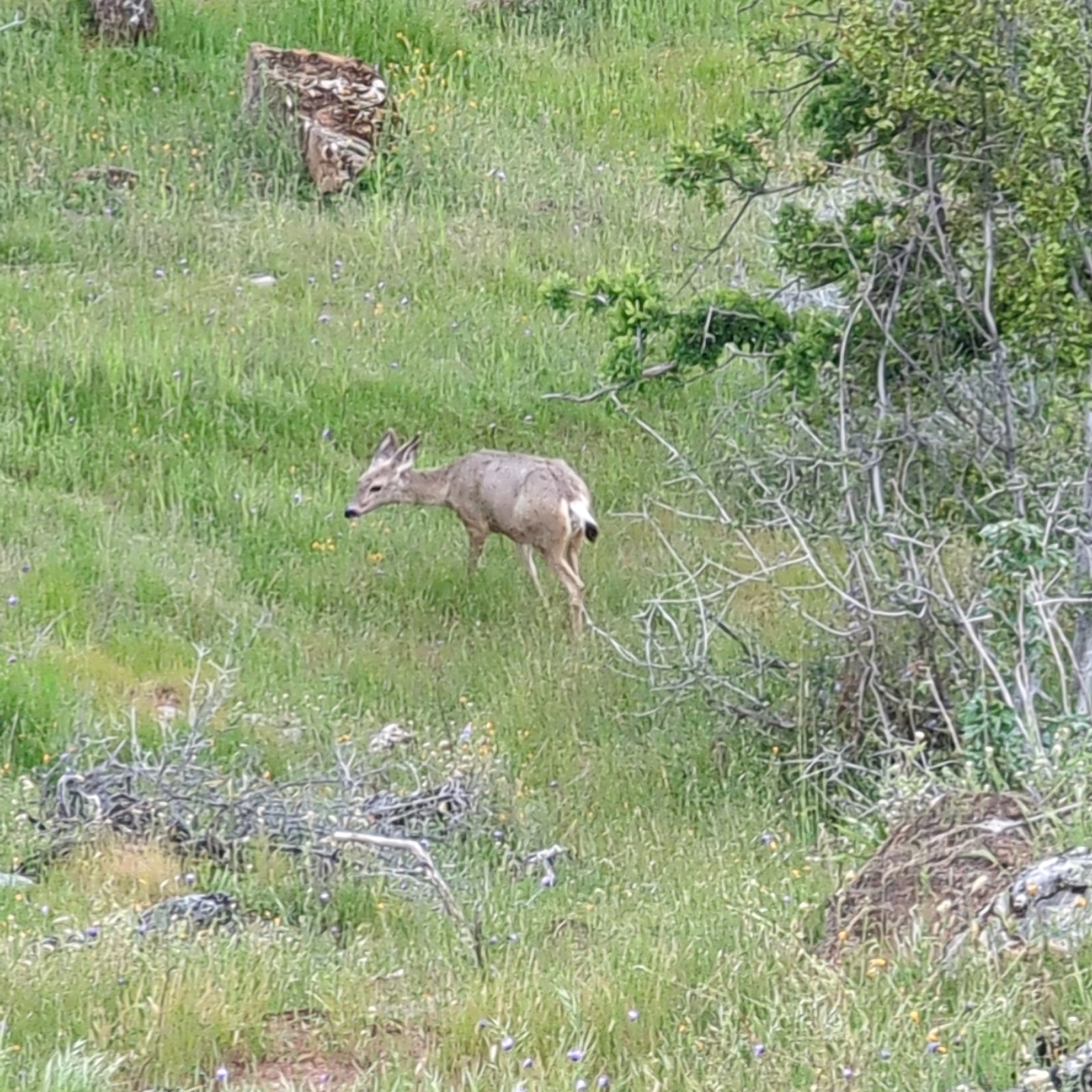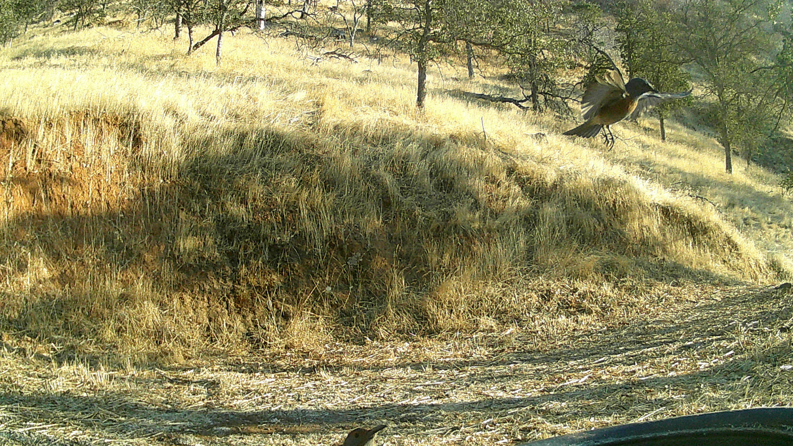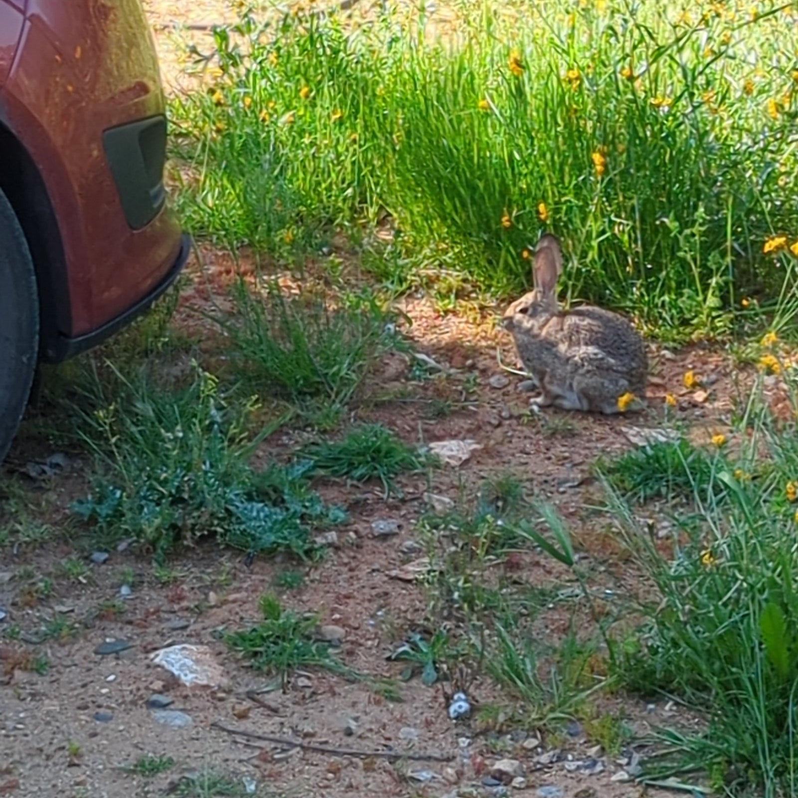 In the early morning or as dusk settles, you might catch a glimpse of energetic rabbits (Sylvilagus spp.) hopping through the grassy fields surrounding the cabin. These small, fluffy herbivores bring a touch of innocence and playfulness to the landscape. Their rapid movements and keen senses are testament to their adaptability in a world filled with predators. That said, they are very calm around non-aggressive people and like to hang around cars parked near the water tank.