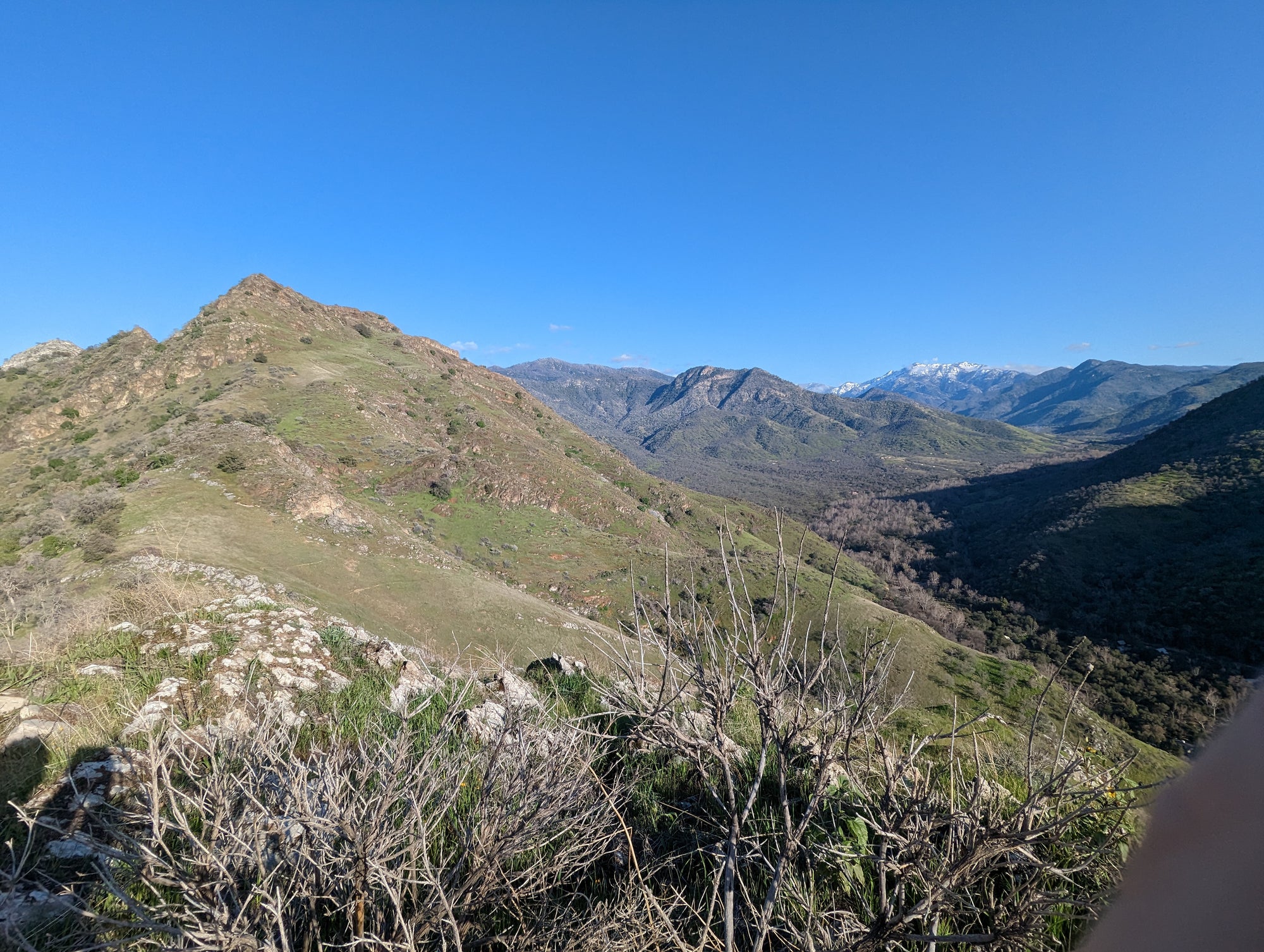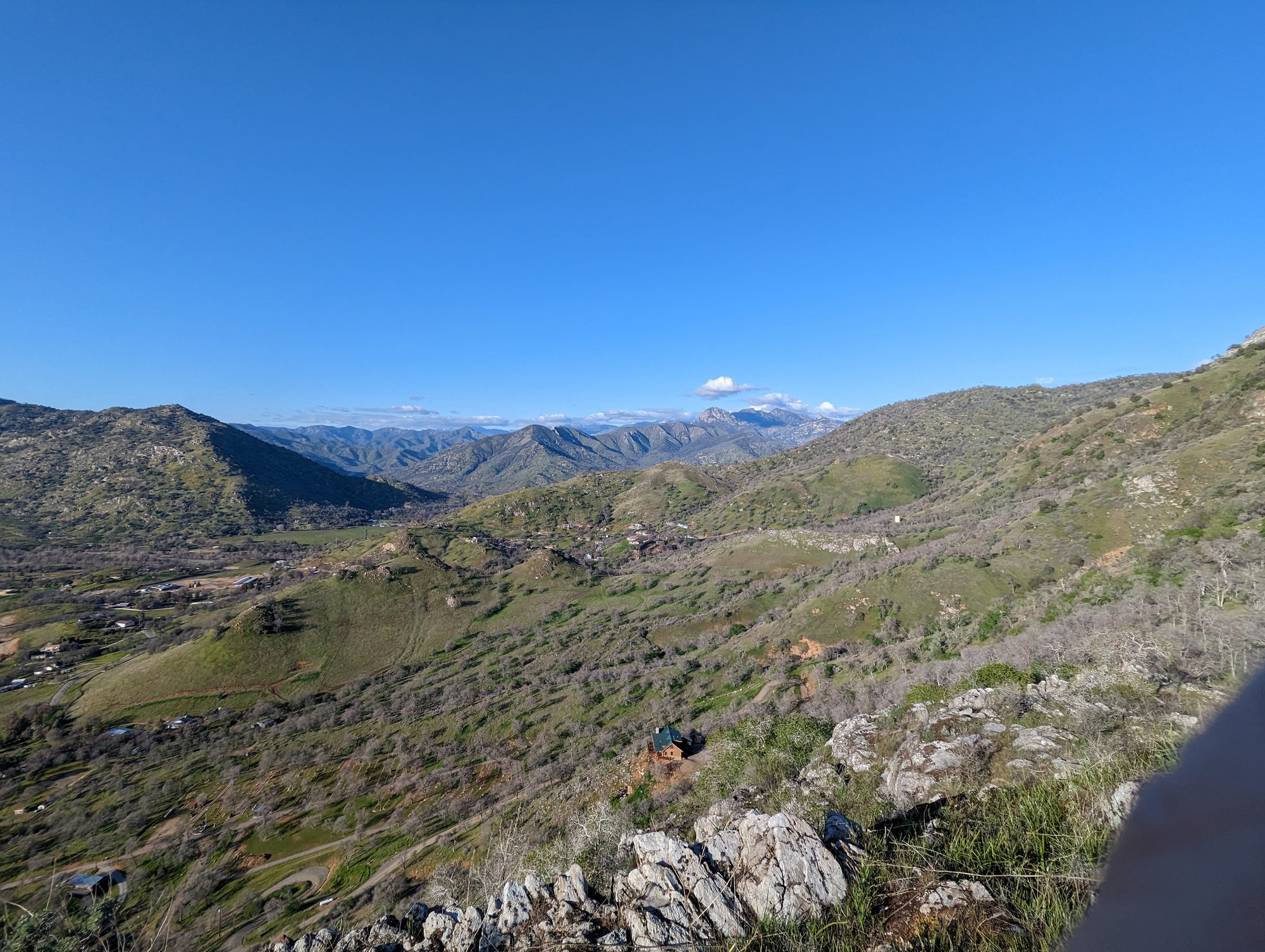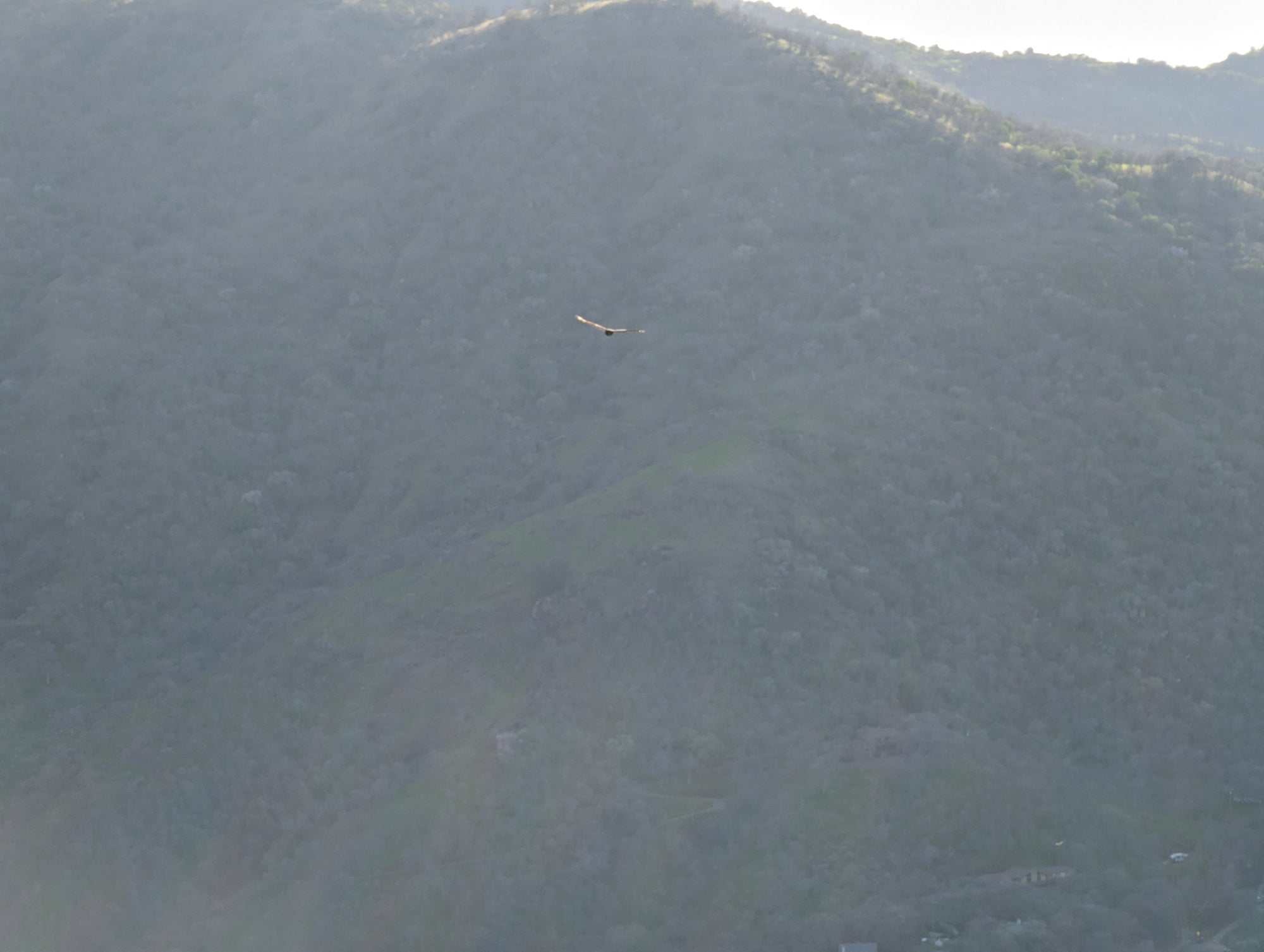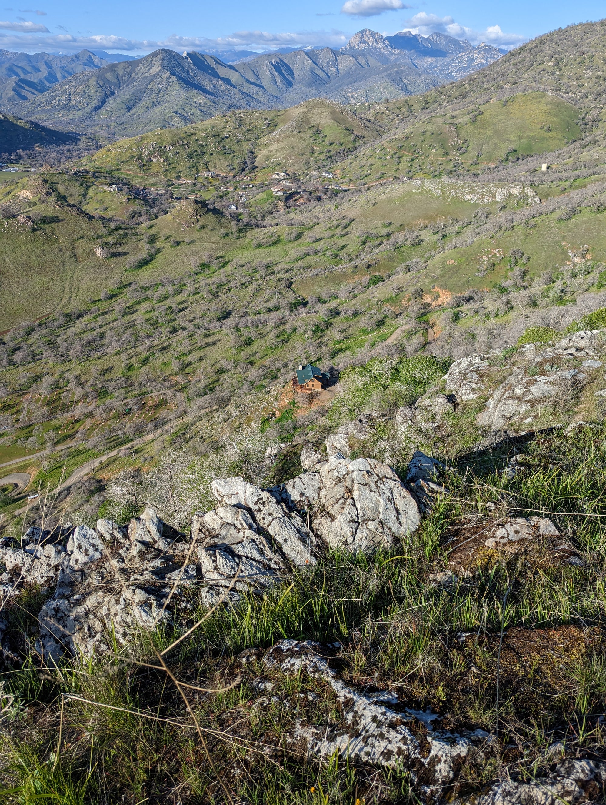The view from Little Blossom is just fantastic. You can look straight onto Blossom Peak, down into the South Fork, out to Lake Keawah and onto main street Three Rivers. It's a steep drop down from Little Blossom into the South Fork, so my mind wouldn't let me too close to that edge. It looks to me like Little Blossom is at about 1,700 feet in altitude, which puts it about 900 feet above the valley. So when you are up there, you can look down at birds that are soaring above the ground. The bird in some of the photos is a vulture.
