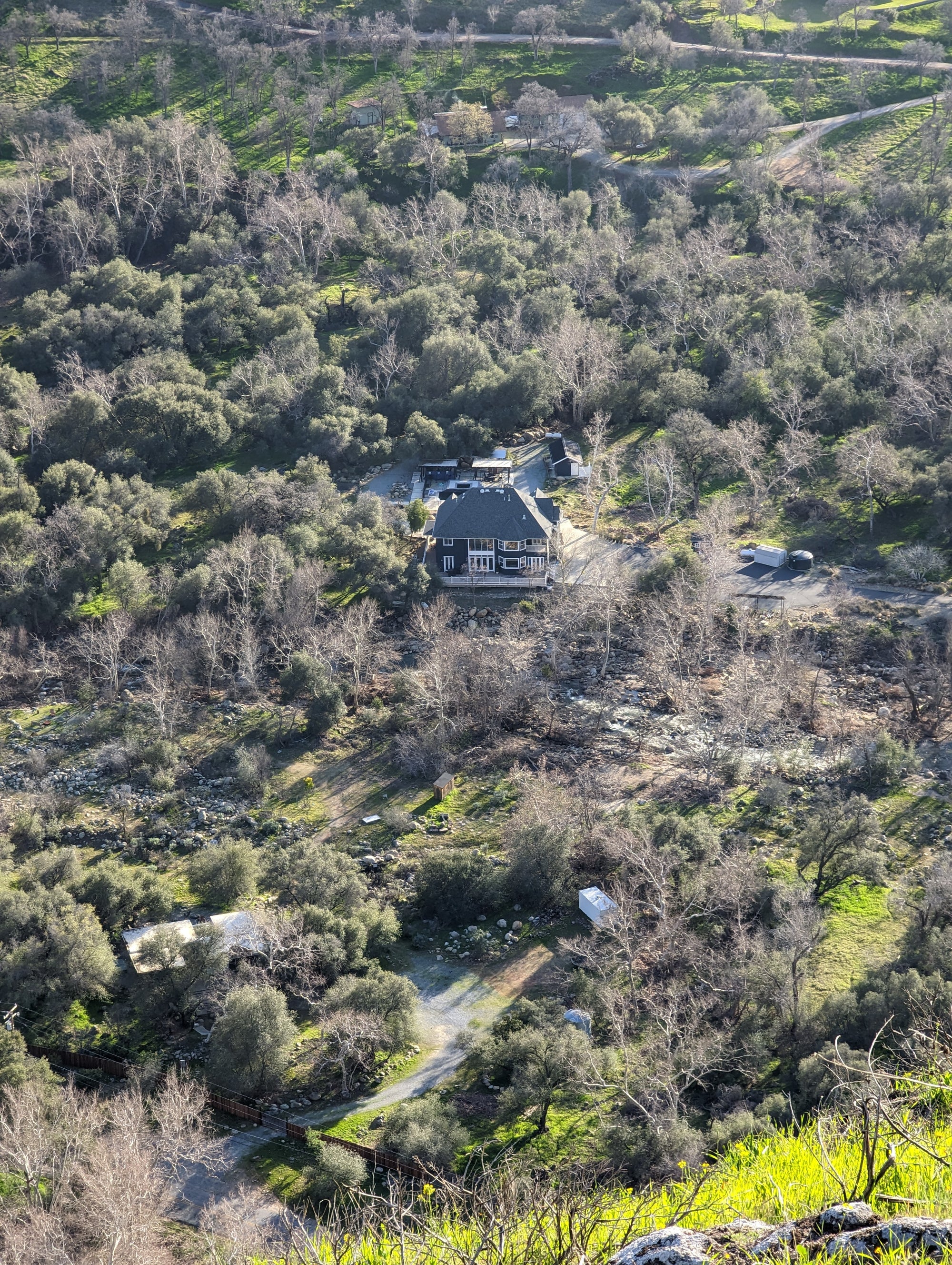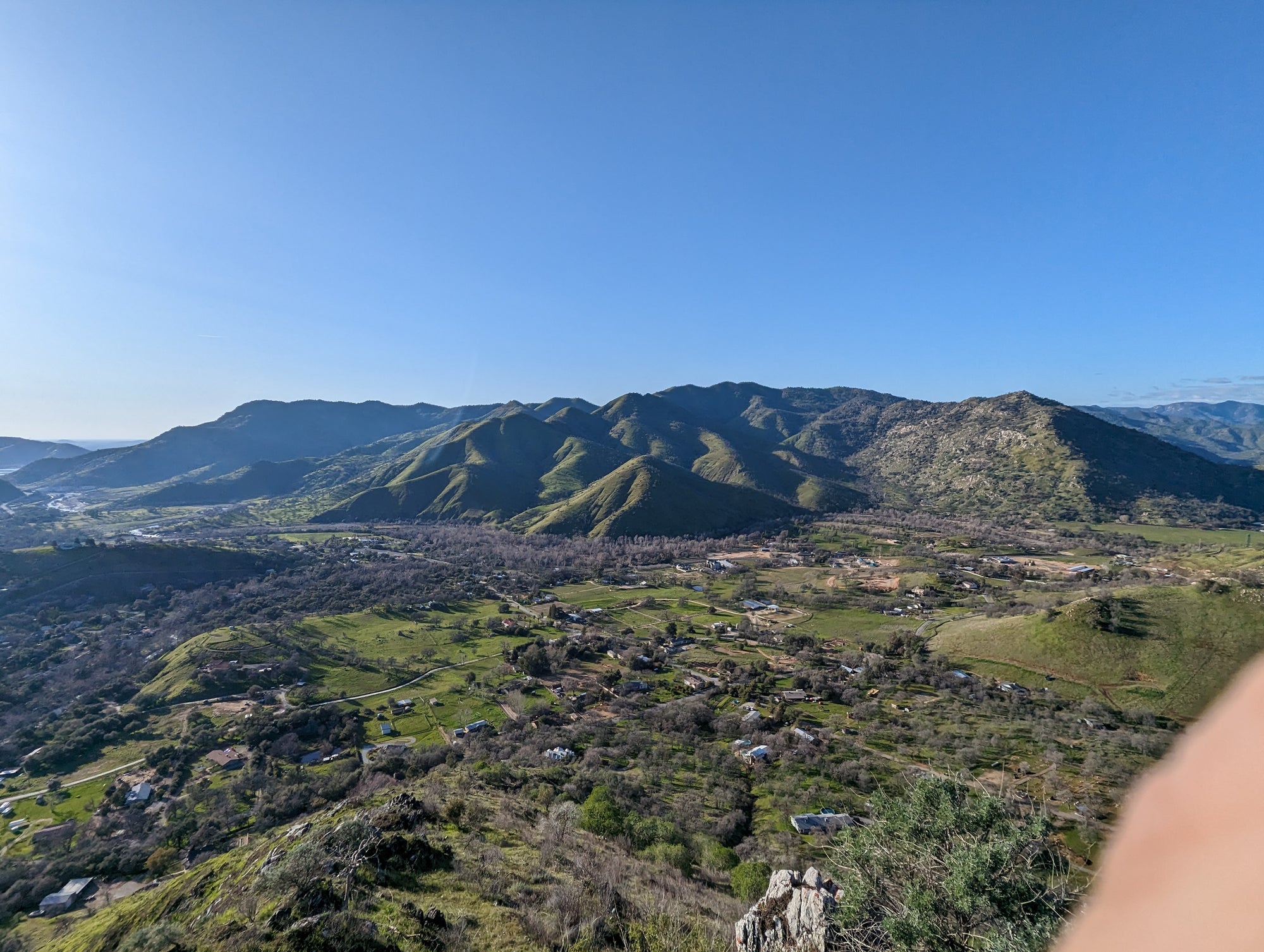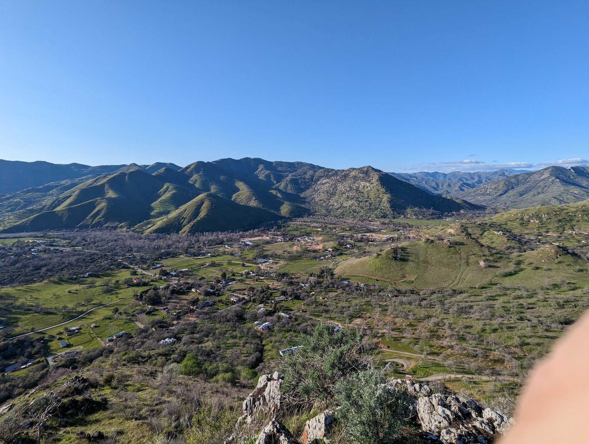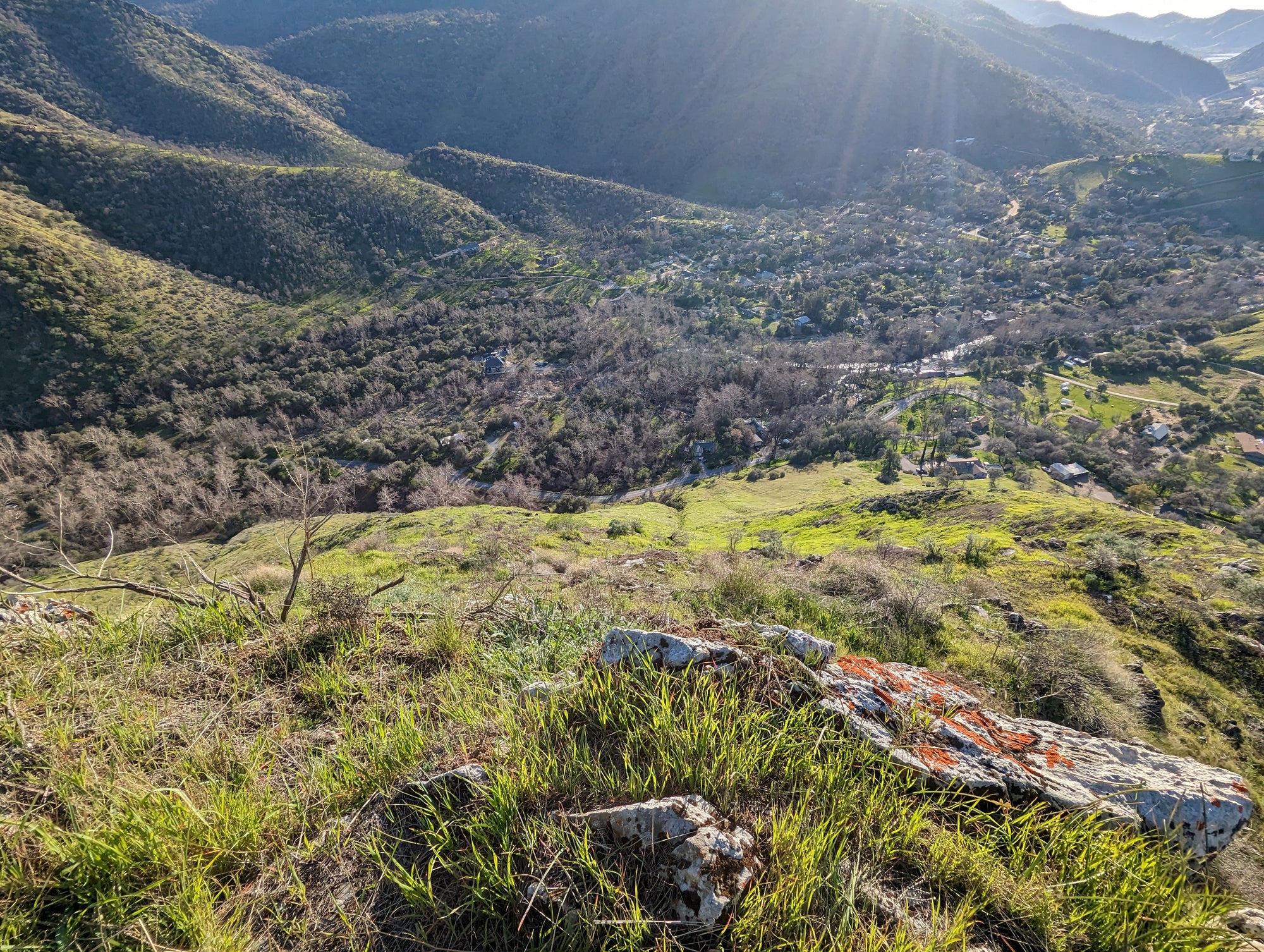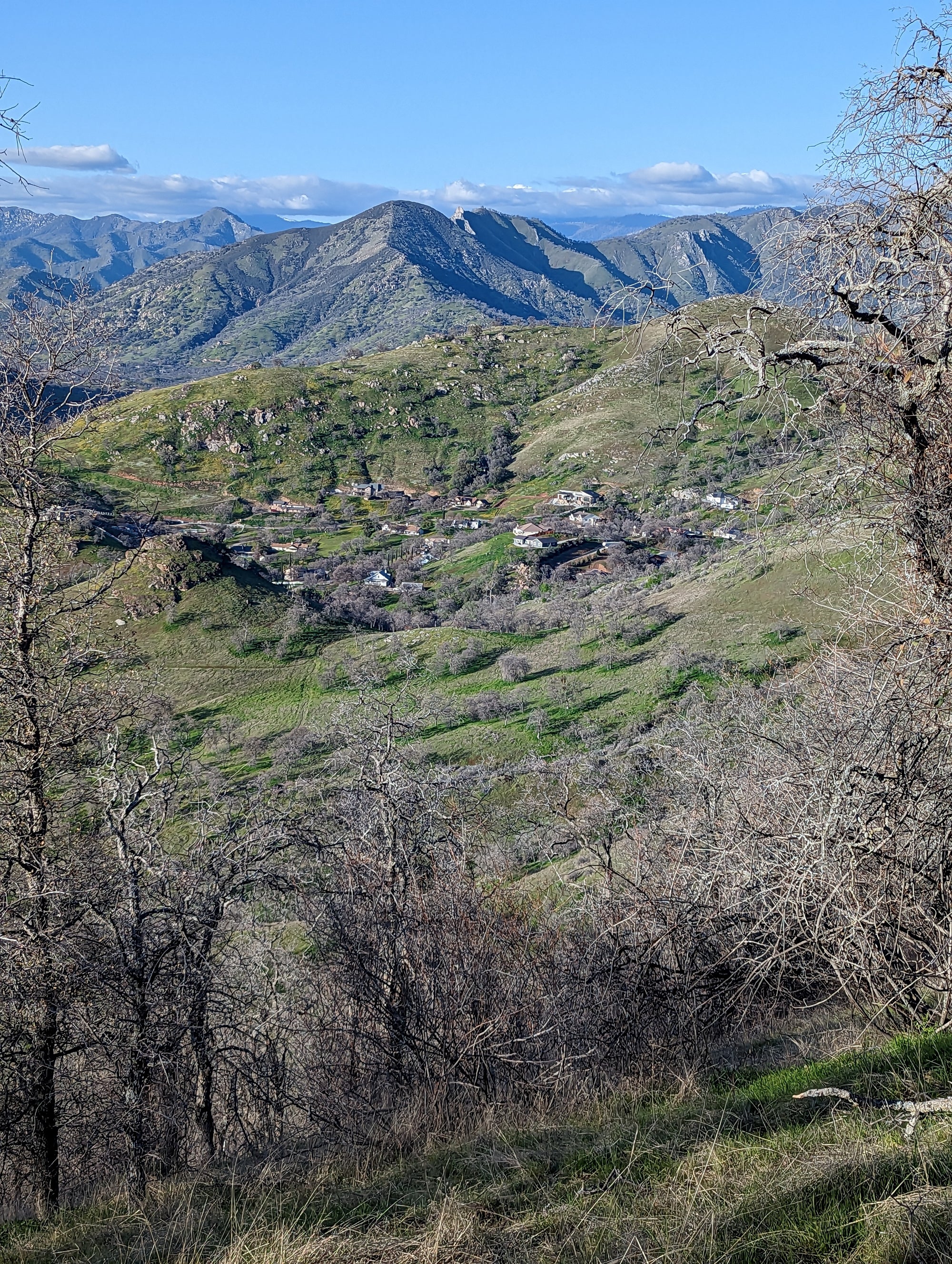 The view from Little Blossom is just fantastic. You can look straight onto Blossom Peak, down into the South Fork, out to Lake Keawah and onto main street Three Rivers. It's a steep drop down from Little Blossom into the South Fork, so my mind wouldn't let me too close to that edge. It looks to me like Little Blossom is at about 1,700 feet in altitude, which puts it about 900 feet above the valley. So when you are up there, you can look down at birds that are soaring above the ground. The bird in some of the photos is a vulture.