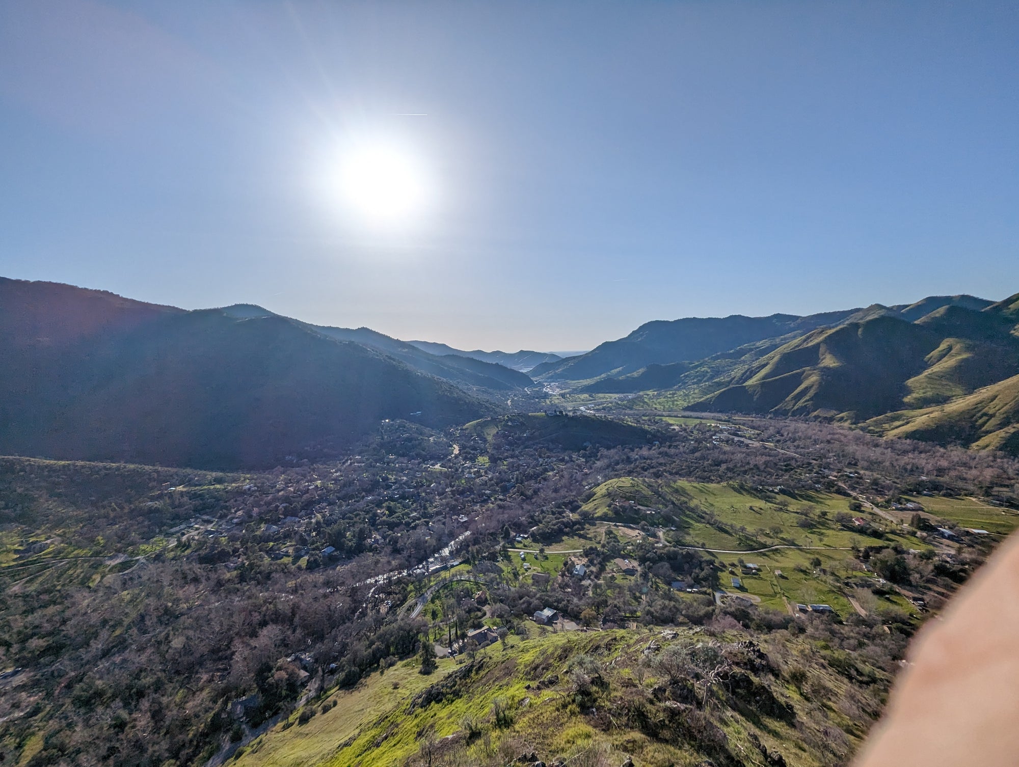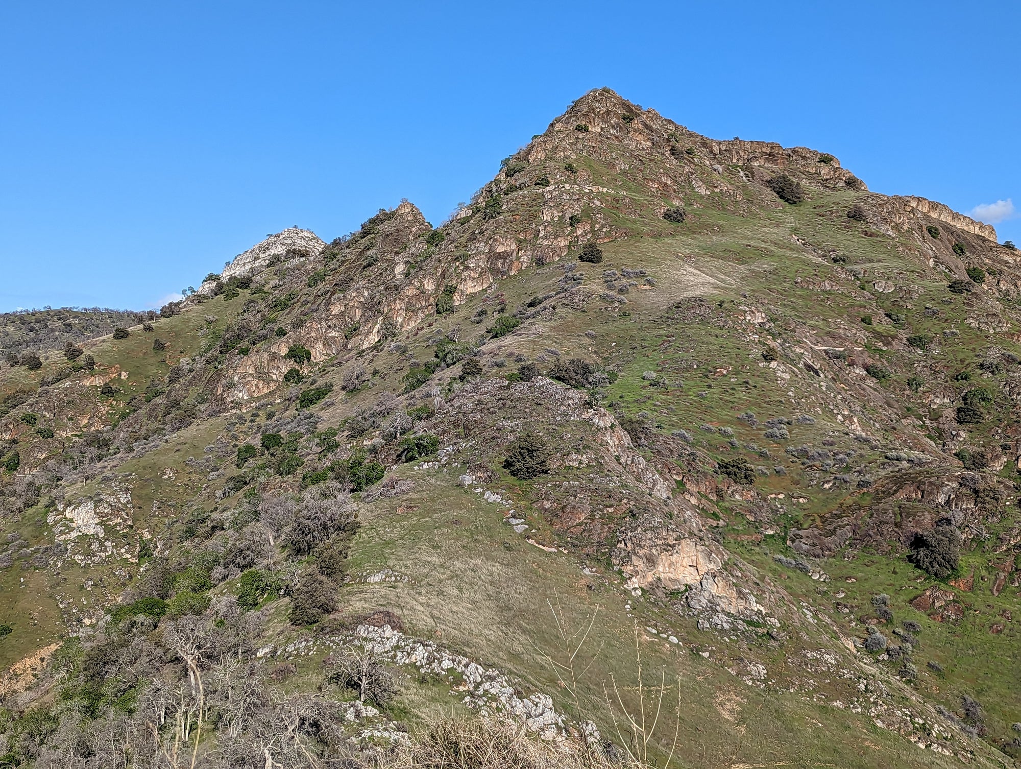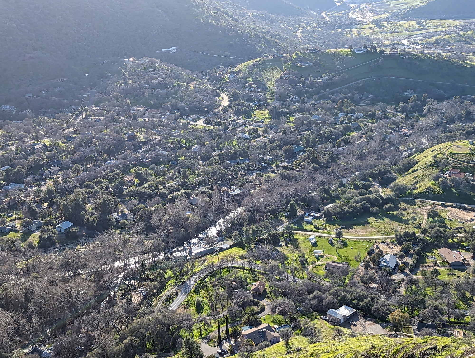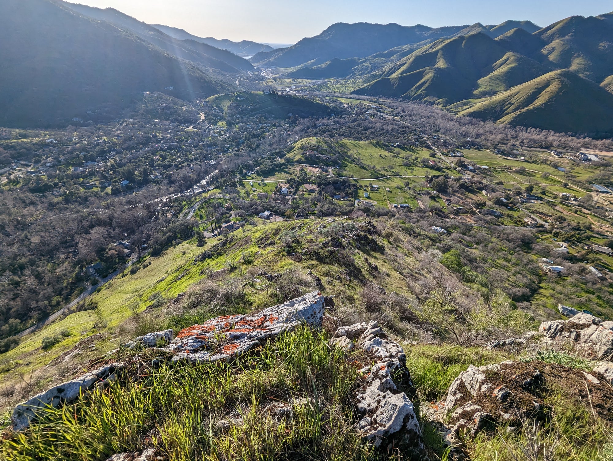 The view from Little Blossom is just fantastic. You can look straight onto Blossom Peak, down into the South Fork, out to Lake Keawah and onto main street Three Rivers. It's a steep drop down from Little Blossom into the South Fork, so my mind wouldn't let me too close to that edge. It looks to me like Little Blossom is at about 1,700 feet in altitude, which puts it about 900 feet above the valley. So when you are up there, you can look down at birds that are soaring above the ground. The bird in some of the photos is a vulture.